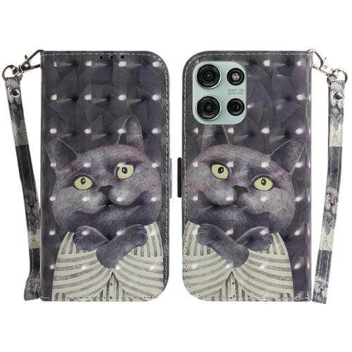 Funda de Cuero con Tapa 3D para Motorola Moto G75 5G (Gato Blanco y Negro)