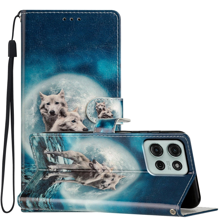 Funda de Cuero para Motorola Moto G75 5G con Dibujo de Colores (Twin Wolves)