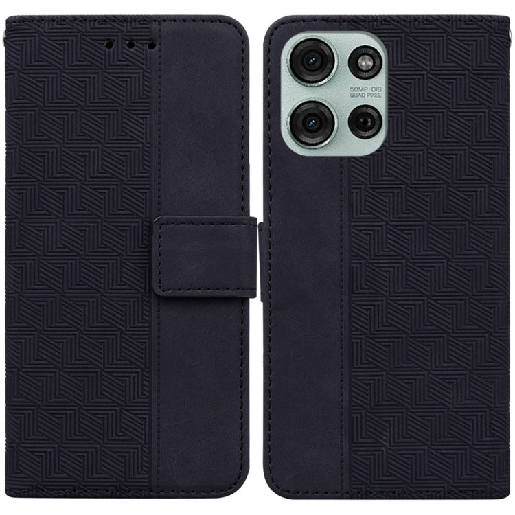 Funda de Cuero con Relieve Geométrico para Motorola Moto G75 5G (Negra)