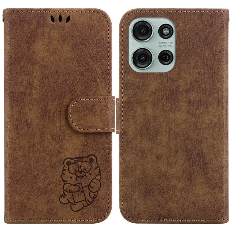 Funda de Cuero con Relieve de Tigre para Motorola Moto G75 5G (Marrón)