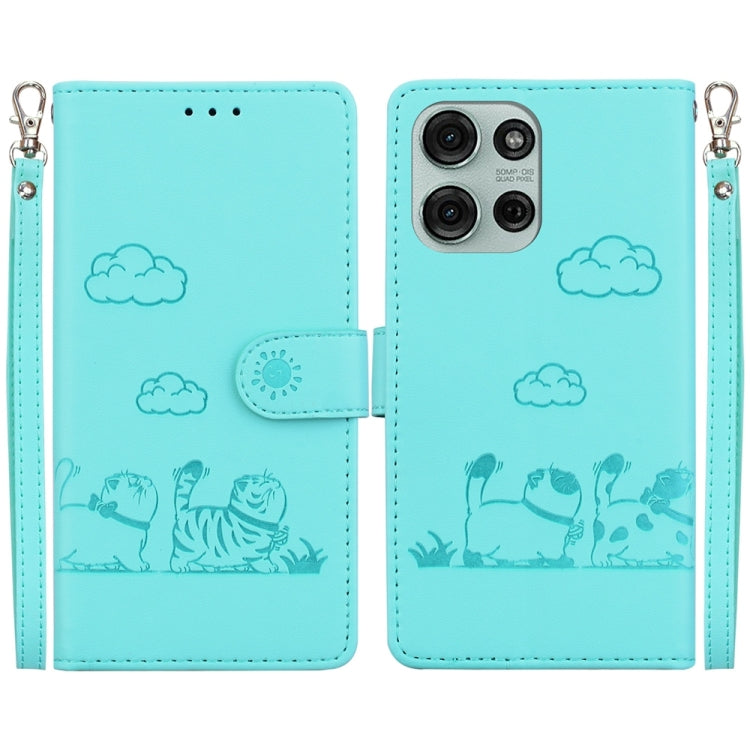 Funda de Cuero Rfid para Motorola Moto G75 5G con Diseño de Gatos (Verde)