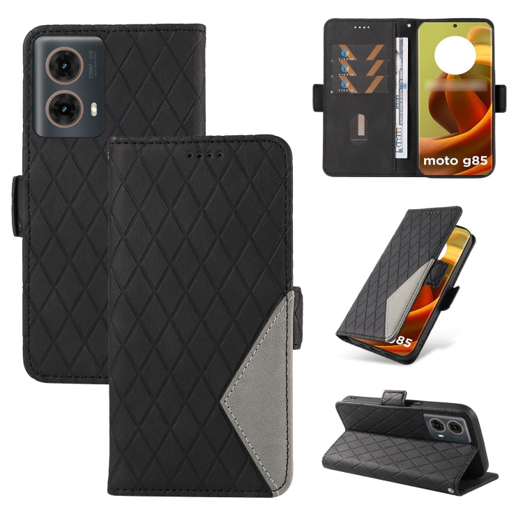 Funda de Cuero Motorola Moto G85 con Diseño Entramado Rombal Dos Colores (Negra)