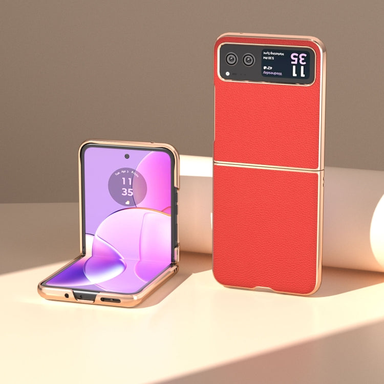Funda de Cuero Genuino para Motorola Razr 40 Nano Plating Serie Weilai (Rojo)