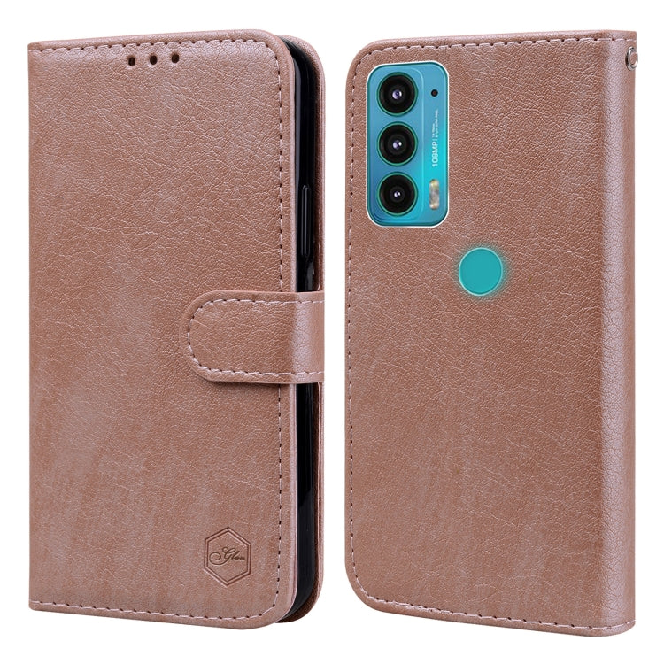 Funda para Motorola Moto E22 / E22I PU + TPU Textura de Cuero Aceitoso (Champán)