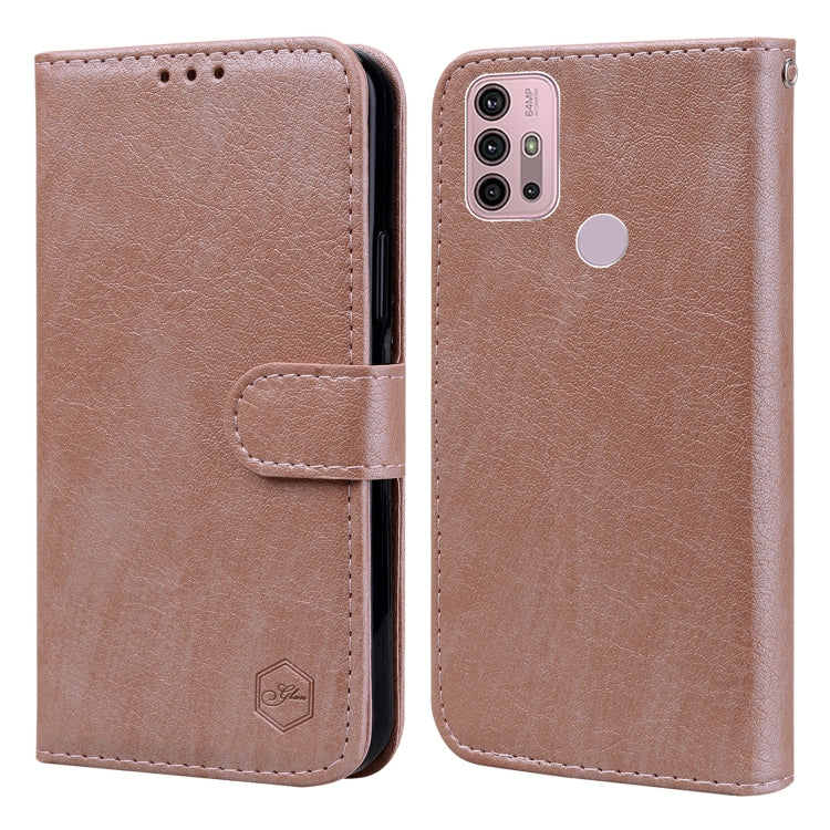 Funda para Motorola Moto E20 E30 E40 PU + TPU Textura Cuero Aceitoso (Champán)