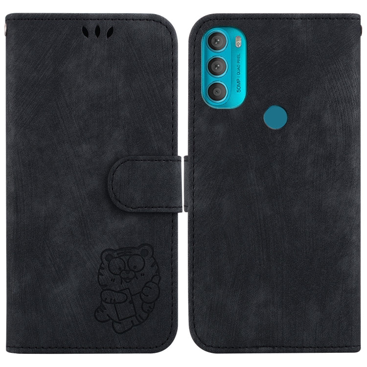 Funda de Cuero con Relieve Little Tiger para Motorola Moto G 2022 (Negro)
