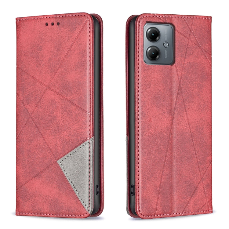 Funda de Cuero Magnético para Motorola Moto G14 4G con Textura de Rombo (Rojo)