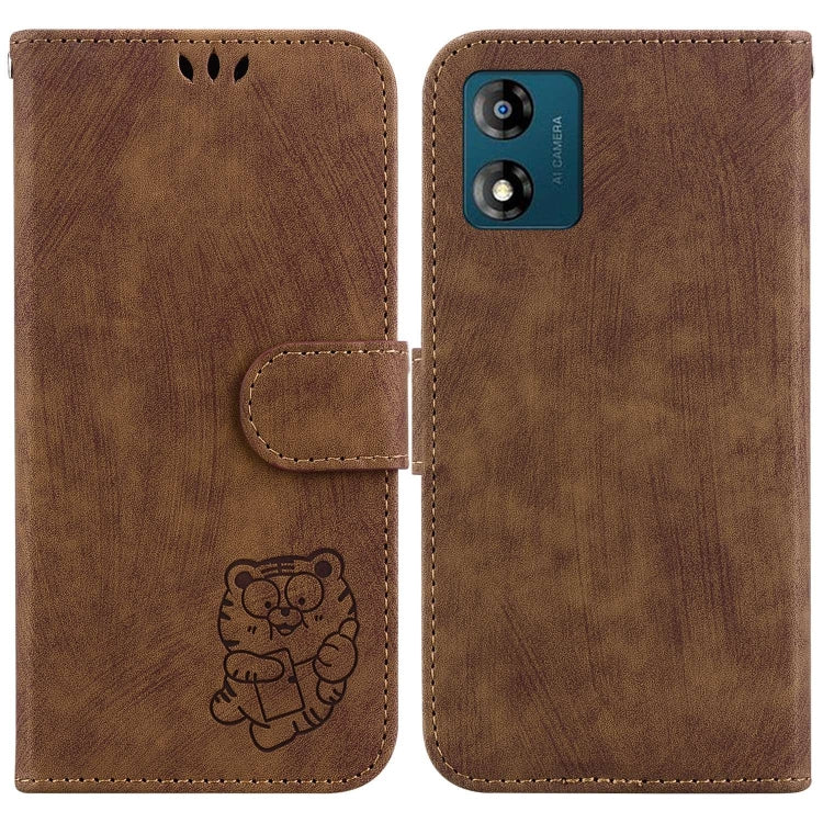 Funda de Cuero para Motorola Moto E13 Little Tiger en Relieve (Marrón)