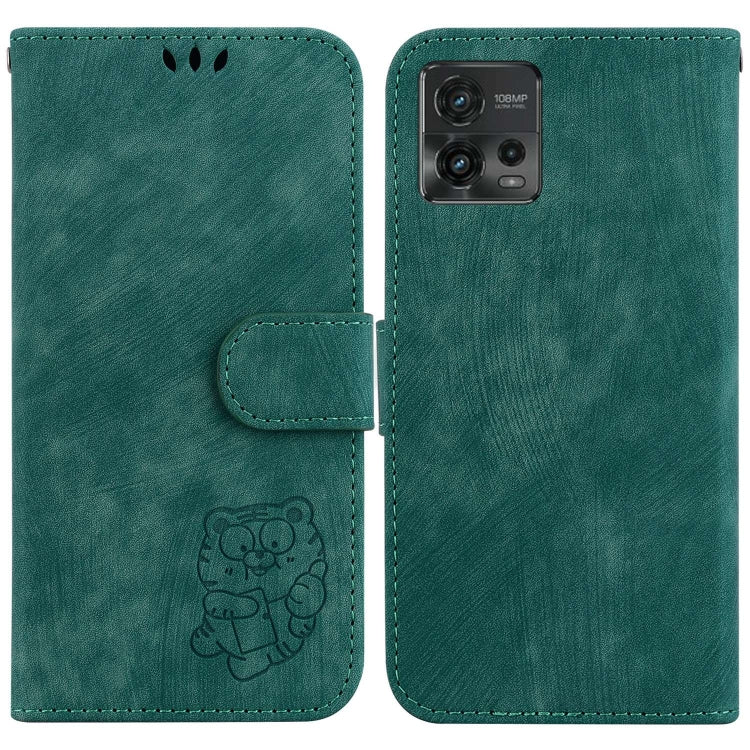Funda de Cuero para Motorola Moto G72 con Relieve Little Tiger (Verde)