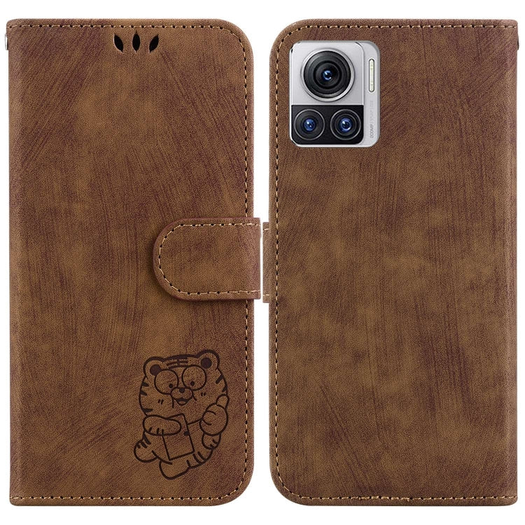 Funda para Motorola Moto X30 Pro 5G de Cuero con Relieve Little Tiger (Marrón)