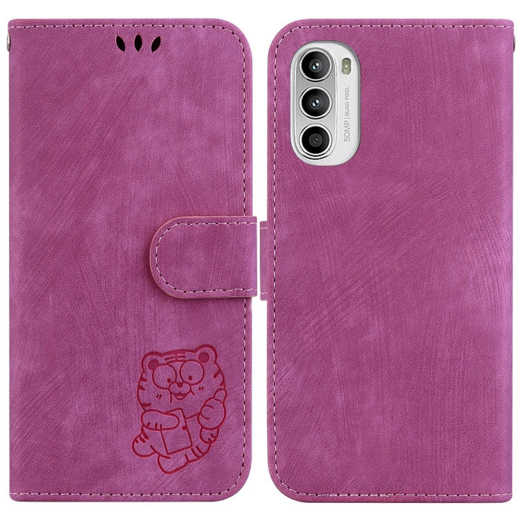 Funda de Cuero para Motorola Moto G73 con Relieve Little Tiger (Rojo Rosa)