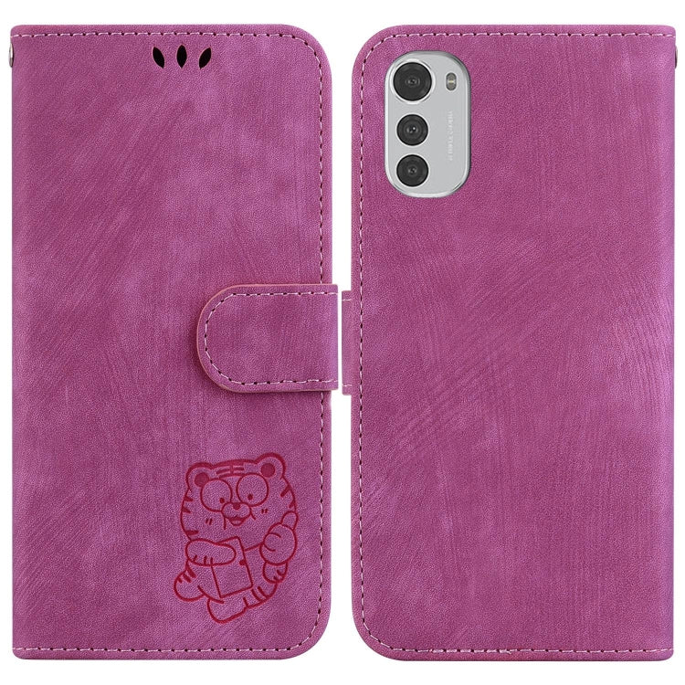 Funda de Cuero para Motorola Moto E32 con Relieve Little Tiger (Rojo Rosa)