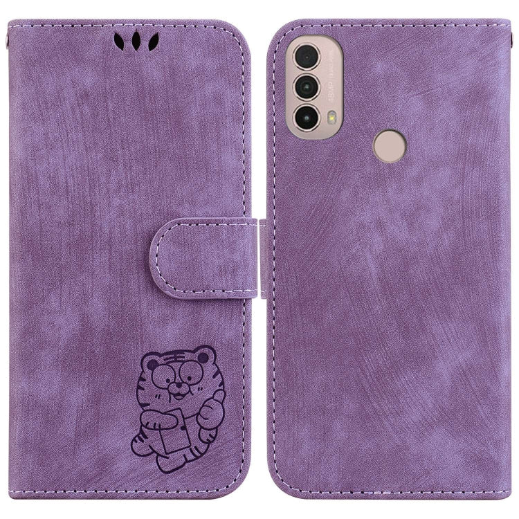 Funda para Motorola Moto E20 E30 E40 de Cuero con Relieve Little Tiger (Púrpura)