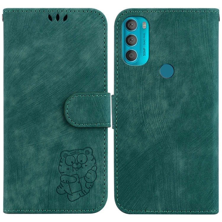 Funda para Motorola Moto G Power 2022 de Cuero con Relieve Little Tiger (Verde)