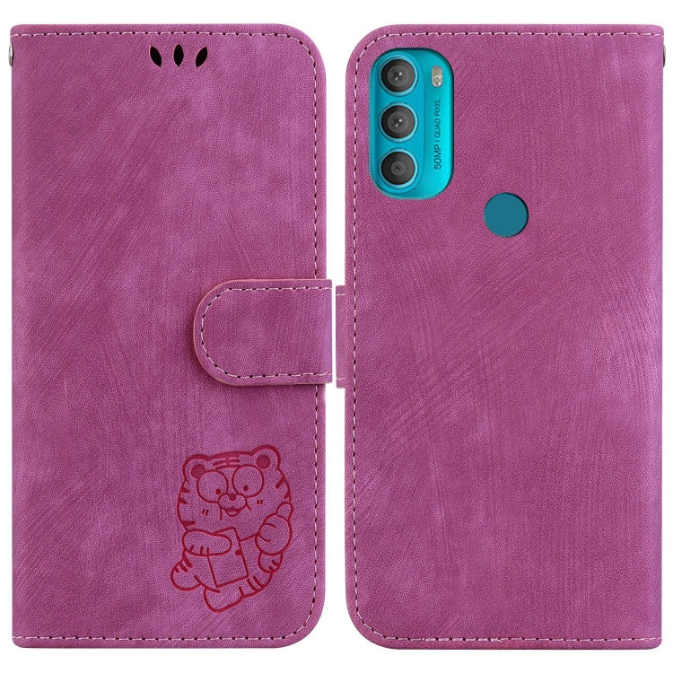 Funda de Cuero para Motorola Moto G50 5G con Relieve Little Tiger (Rojo Rosa)