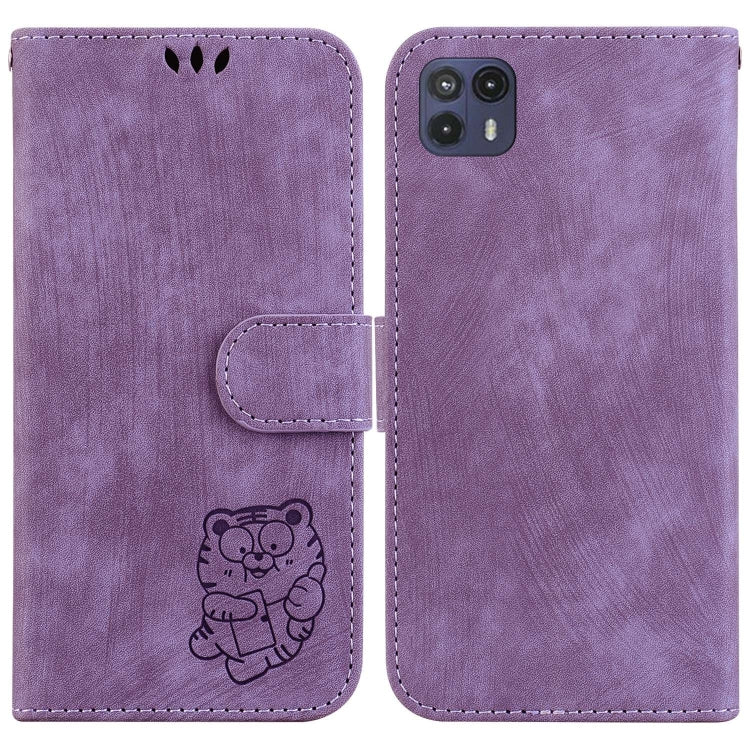 Funda para Motorola Moto G50 5G de Cuero con Relieve Little Tiger (Púrpura)