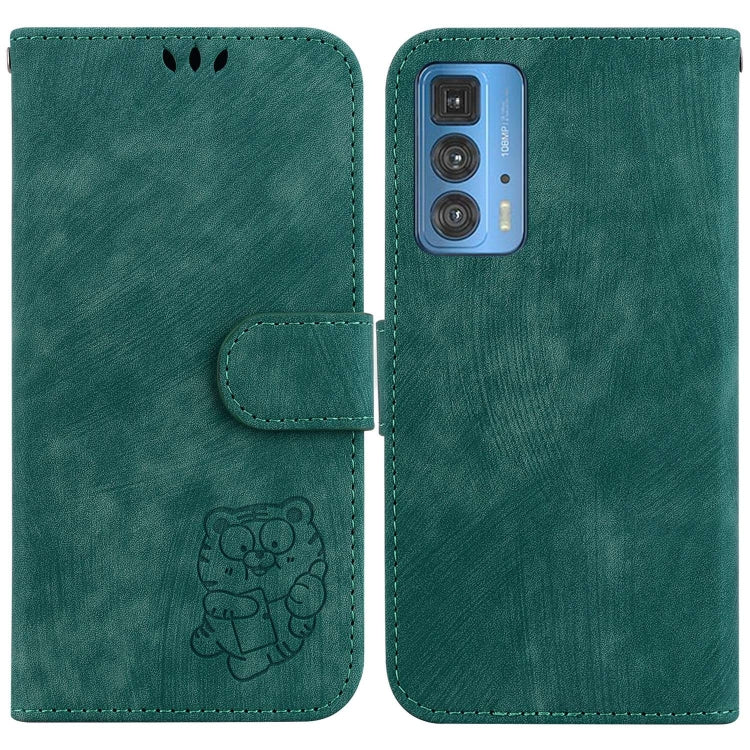 Funda de Cuero para Motorola Edge 20 Pro Little Tiger en Relieve (Verde)