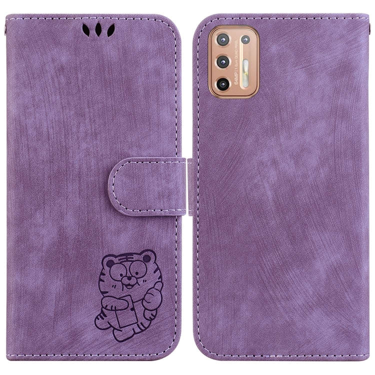 Funda de Cuero en Relieve Little Tiger para Motorola Moto G9 Power (Púrpura)