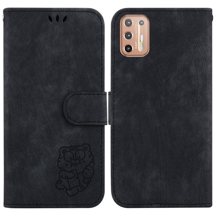 Funda de Cuero para Motorola Moto G9 Plus con Relieve Little Tiger (Negro)