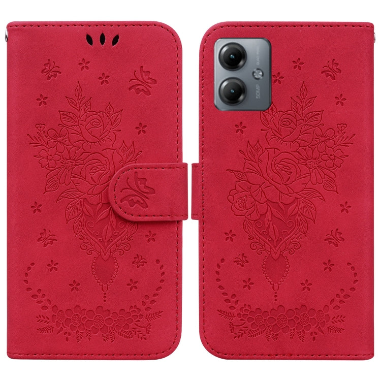 Funda de Cuero para Motorola Moto G14 Butterfly Rose en Relieve (Rojo)