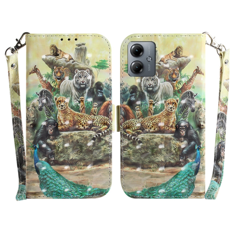 Funda de Cuero para Motorola Moto G14 con Tapa Horizontal y Diseño 3D (Zoo)