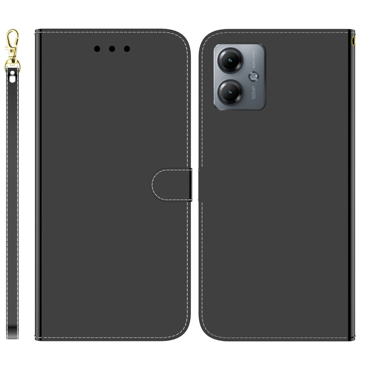 Funda de Cuero para Motorola Moto G14 con Superficie de Espejo Imitada (Negro)
