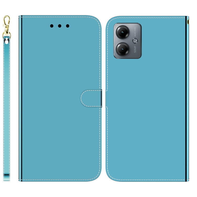Funda de Cuero para Motorola Moto G14 con Superficie de Espejo Imitada (Azul)