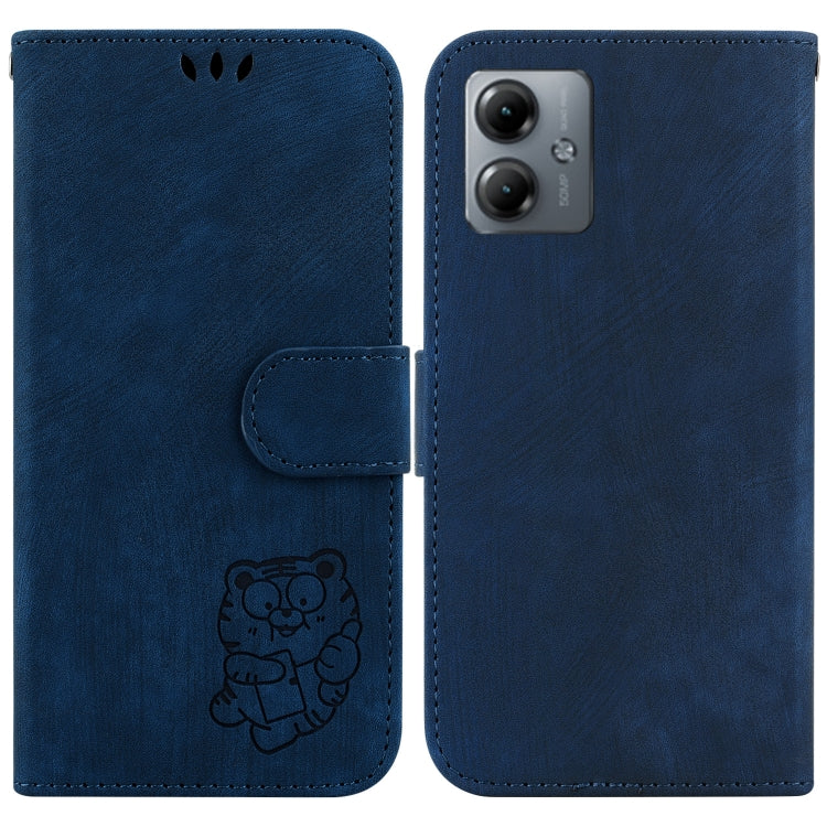 Funda de Cuero para Motorola Moto G14 Little Tiger en Relieve (Azul Oscuro)