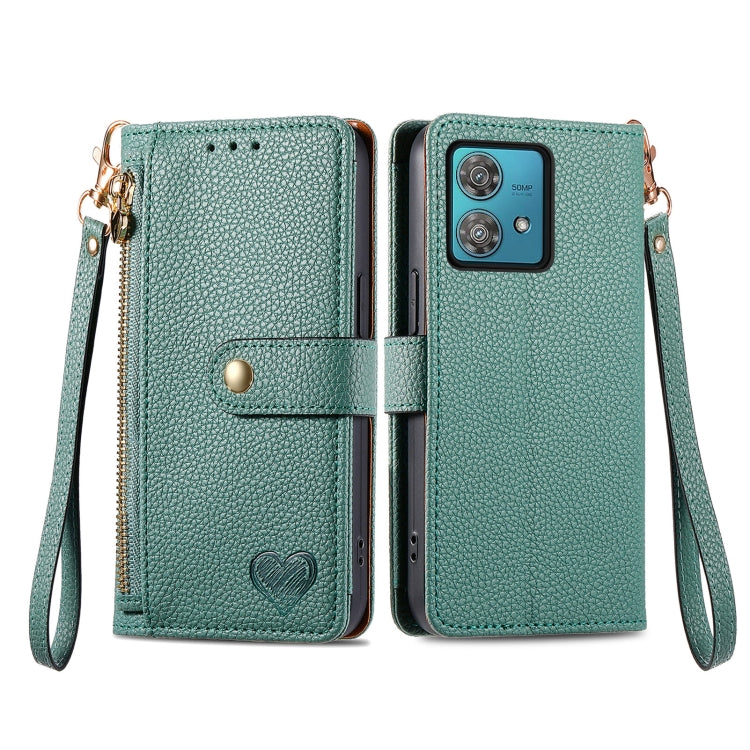 Funda de Cuero para Motorola Moto G84 Love con Lanyard y Zipper (Verde)