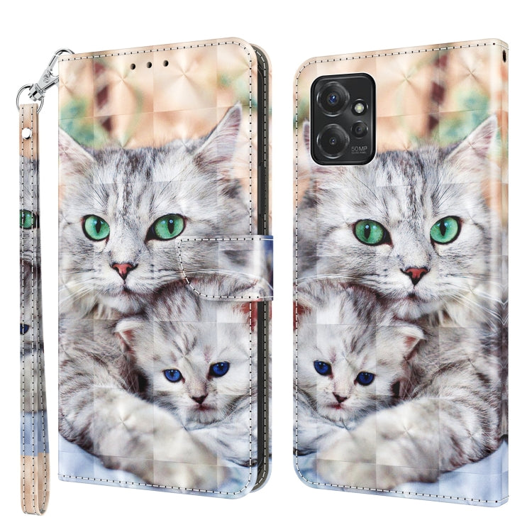 Funda de Cuero para Motorola Moto G Power 2023 Pintada en 3D Dos Gatos Amorosos