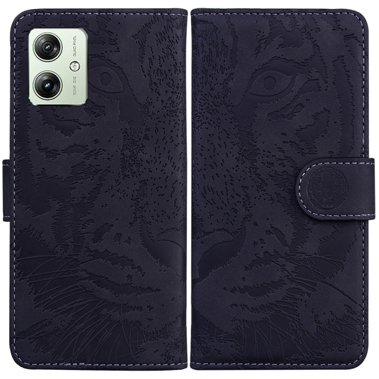 Funda de Cuero para Motorola Moto G54 Tiger con Patrón en Relieve (Negro)