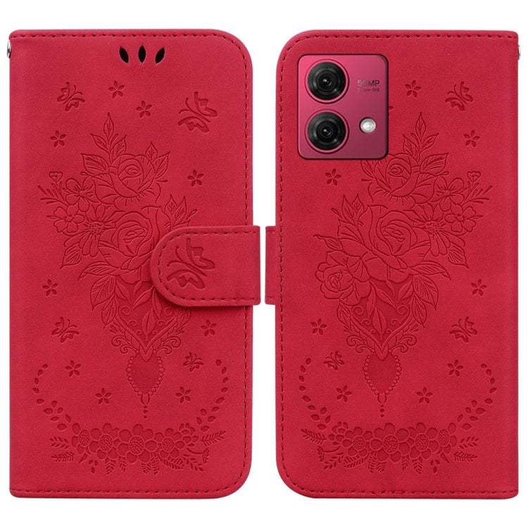Funda de Cuero para Motorola Moto G84 Butterfly Rose en Relieve (Rojo)