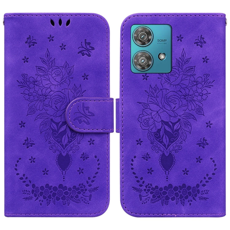 Funda de Cuero para Motorola Edge 40 Neo Butterfly Rose en Relieve (Púrpura)