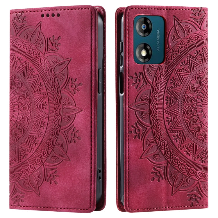 Funda de Cuero Magnética para Motorola Moto E13 Totem en Relieve (Rojo)