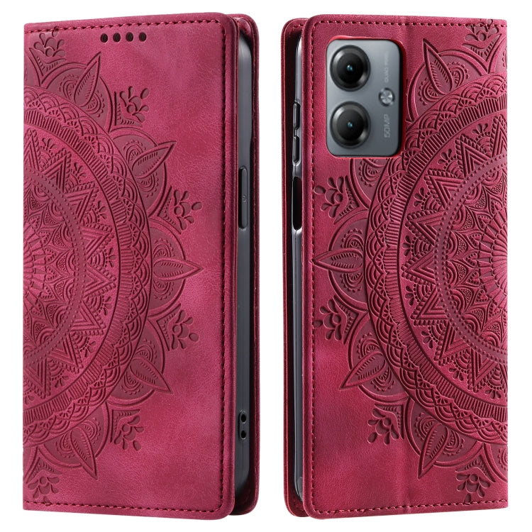 Funda de Cuero Magnética Totem para Motorola Moto G14 en Relieve (Rojo)