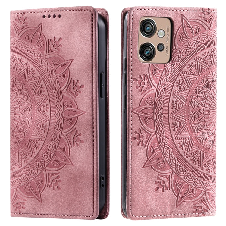 Funda de Cuero Magnética para Motorola Moto E32 Totem en Relieve (Oro Rosa)
