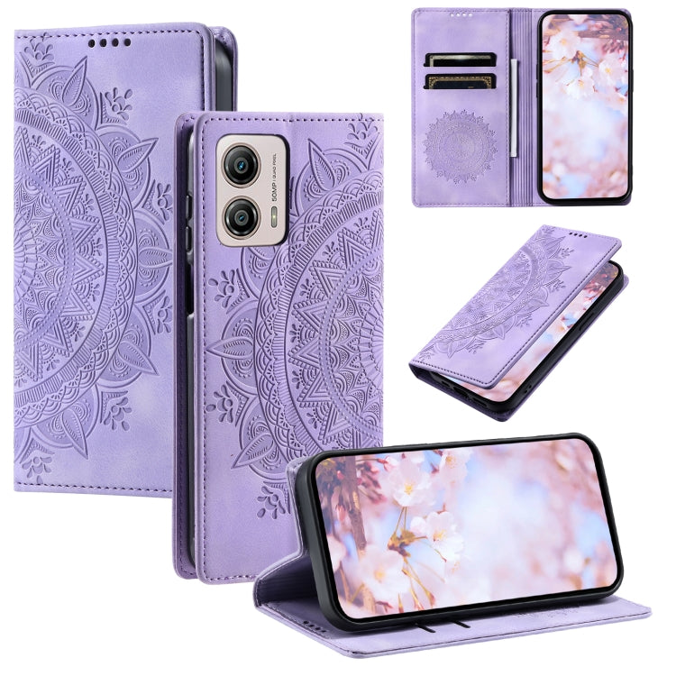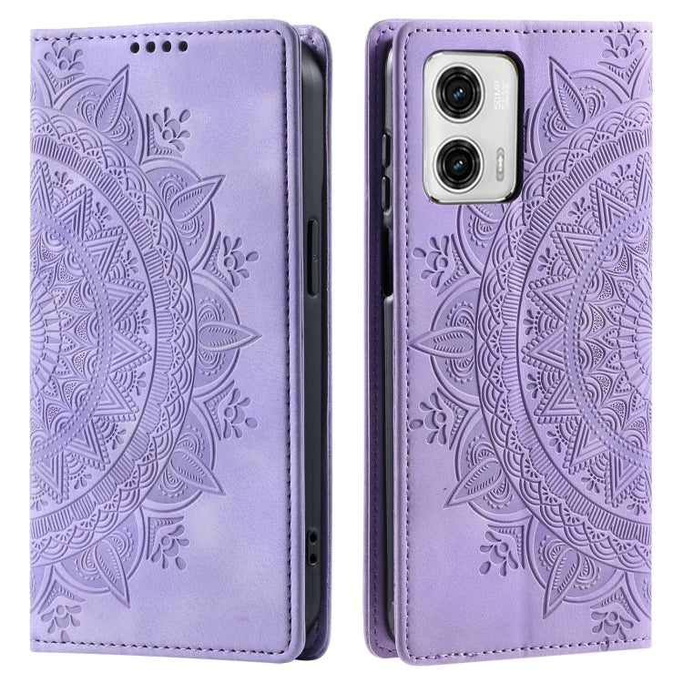 Funda de Cuero Magnética en Relieve para Motorola Moto G53 Totem (Púrpura)