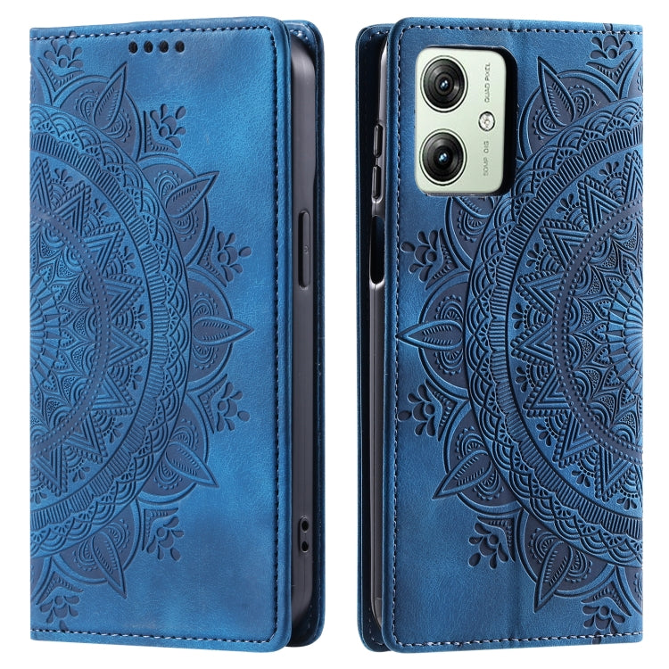 Funda de Cuero Magnética Totem para Motorola Moto G54 con Relieve (Azul)