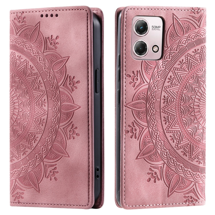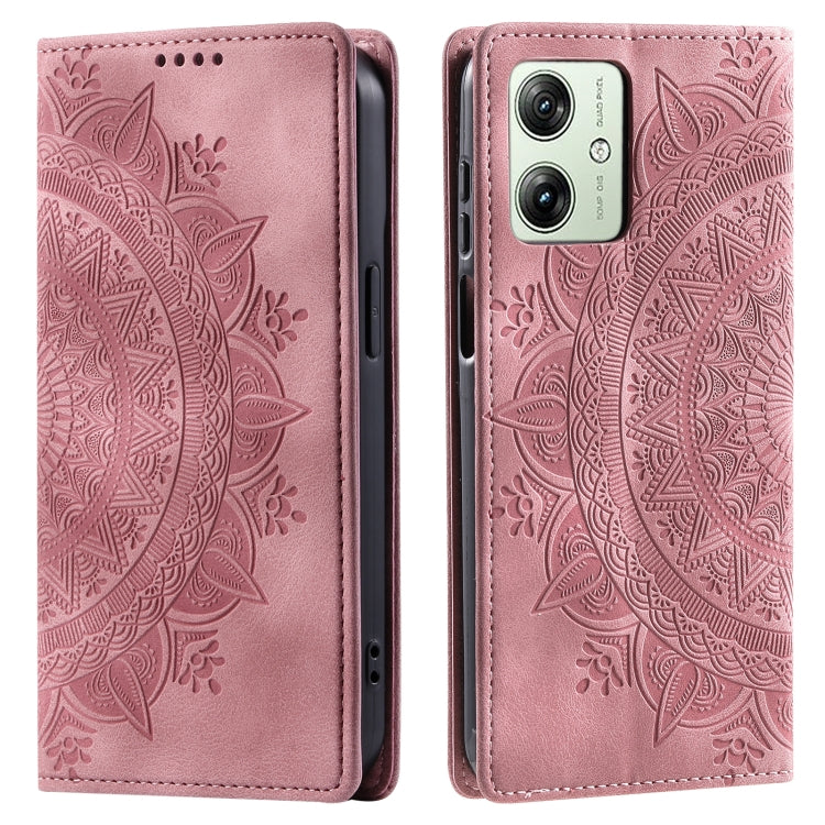 Funda de Cuero Magnética Totem para Motorola Moto G54 en Relieve (Oro Rosa)