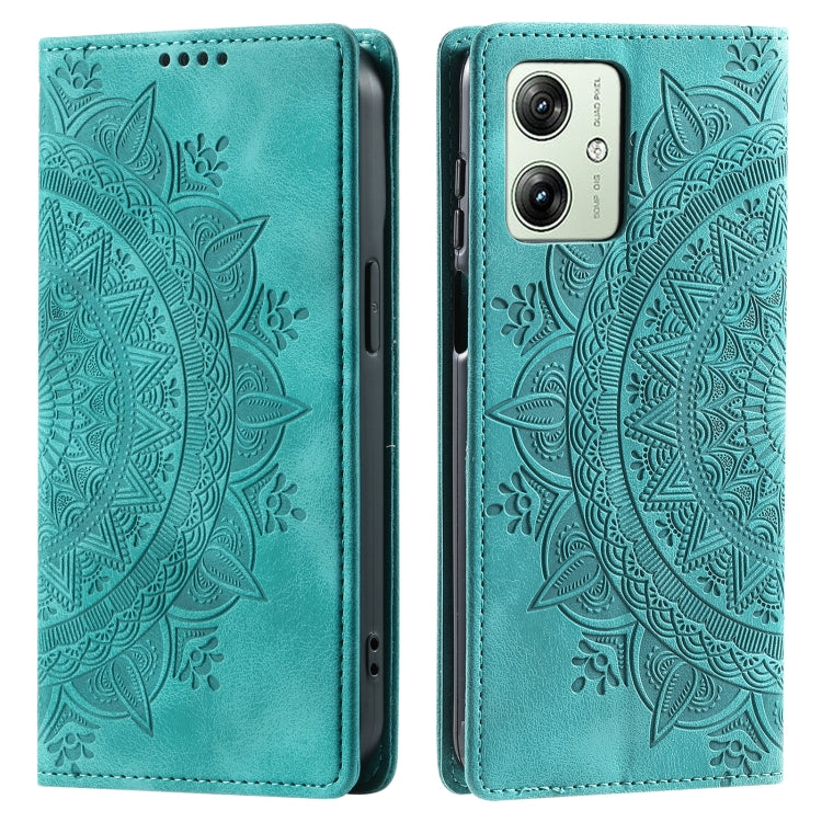 Funda de Cuero Magnética Totem para Motorola Moto G54 en Relieve (Verde)