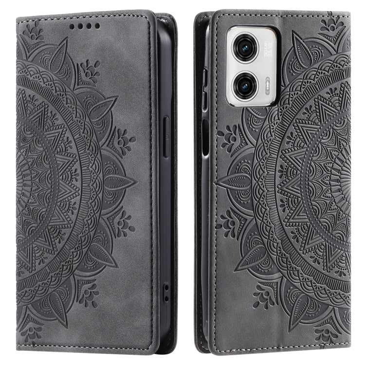 Funda de Cuero Magnética en Relieve para Motorola Moto G73 Totem (Gris)