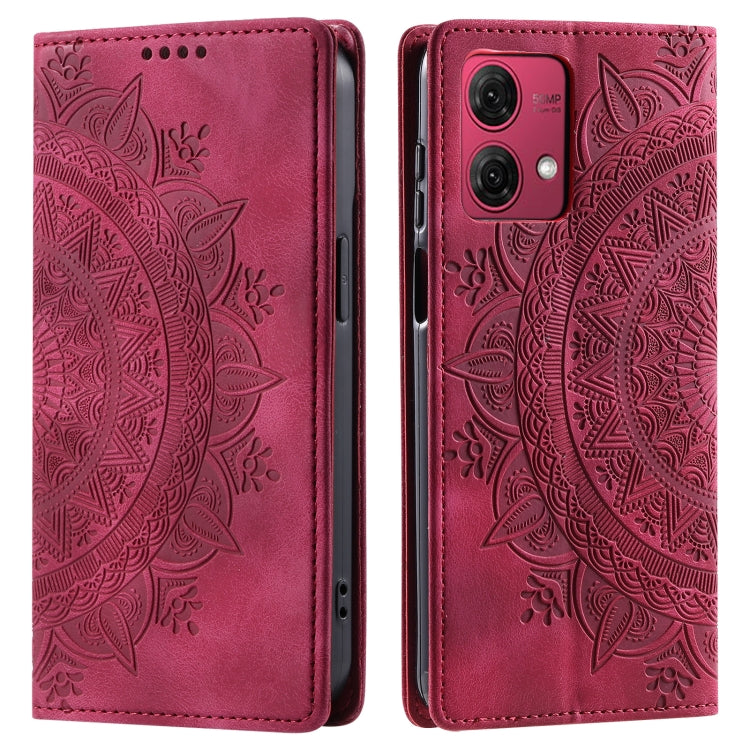 Funda de Cuero Magnética en Relieve para Motorola Moto G84 Totem (Rojo)
