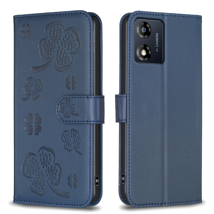 Funda de Cuero para Motorola Moto E13 4G con Relieve de Cuatro Hojas (Azul)