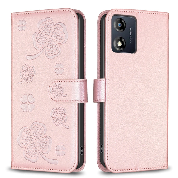 Funda para Motorola Moto E13 4G de Cuero con Relieve de Cuatro Hojas (Rosa)