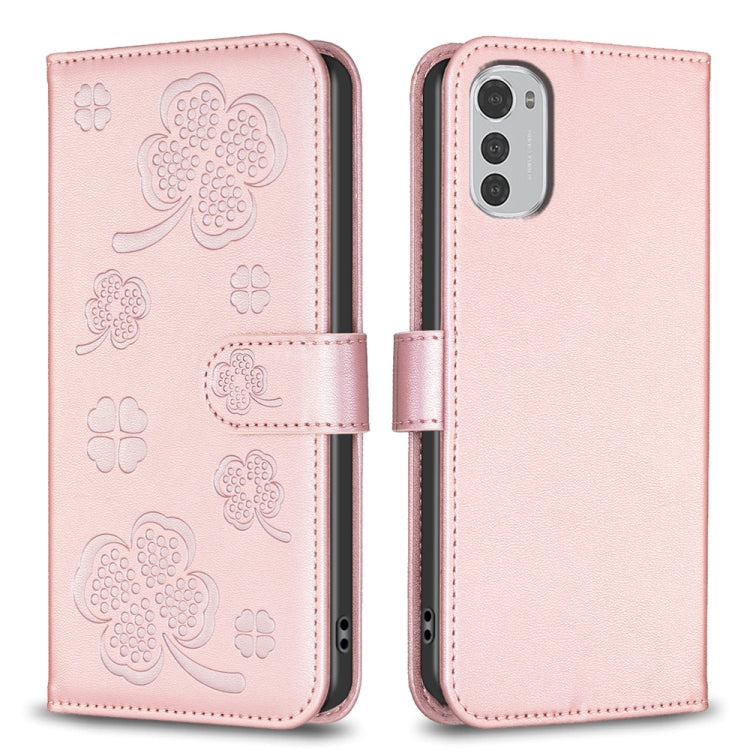 Funda para Motorola Moto E32 4G de Cuero con Relieve de Cuatro Hojas (Rosa)