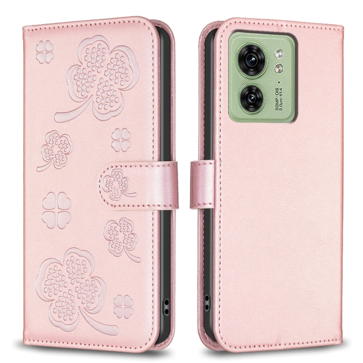 Funda para Motorola Edge 40 5G de Cuero con Relieve de Cuatro Hojas (Rosa)