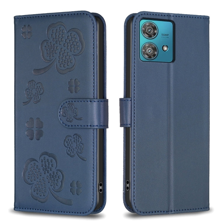 Funda de Cuero para Motorola Edge 40 Neo con Relieve de Cuatro Hojas (Azul)