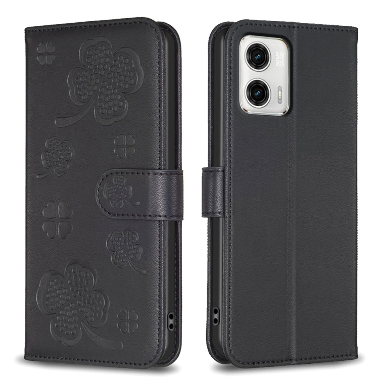 Funda para Motorola Moto G73 5G de Cuero con Relieve de Cuatro Hojas (Negro)