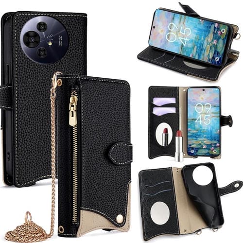 Funda de Cuero Lichi para TCL 503 con Diseño de Cola de Pez y Cadena Cruzada (Morado)