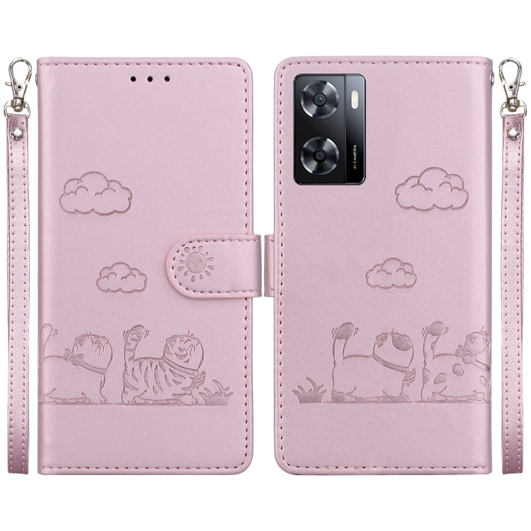 Funda de Cuero Rfid para OnePlus Nord Ce4 5G con Diseño de Gatos (Oro Rosa)